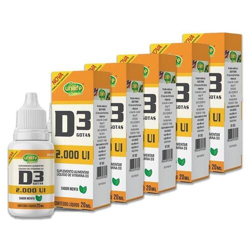 Kit 5 Vitamina D3 2.000 UI Unilife Menta 20ml