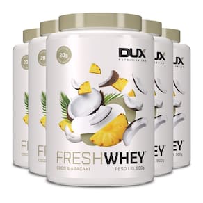 Kit 5 Whey Protein Fresh Dux Abacaxi e Coco 900g modo de consumo: consumir até 2 porções 58 g ao dia ou conforme orientação do de saúde. Modo de preparo: adicione uma porção de 1 dosador 29 g de fresh whey em 250 ml de água e misture utilizando uma coqueteleira até homogeneizar. Consuma imediatamente. Modo de conservação: conservar ao abrigo de luz, calor e umidade. Após aberto, consumir em até 120 dias. Manter a embalagem fechada após o uso. Alérgicos: contém derivados de soja e leite. Pode conter trigo, aveia, amendoim, amêndoa, avelãs, castanha-de-caju e pistaches. Contém lactose. Contém glúten. Marca: Não Informado Ean: 7908609543139