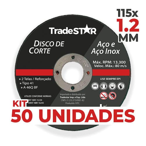 kit com 50 Discos de Corte Metal 4.1/2" 115 x 1,2 mm