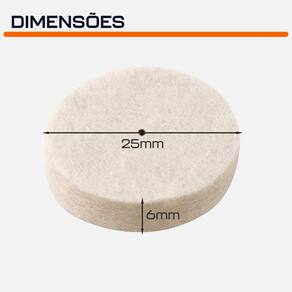 Kit com 50 Discos de Feltro 25mm para Polimento com Micro Retíficas Dremax - Marca: Dremax - Kit exclusivos com 50 discos de feltro 25mm - Indicado para polimentos - Diâmetro do disco: 25mm - Espessura: 6 mm - Diâmetro do furo: 3mm - Uso em micro retíficas de qualquer marca com a haste específica - Para polir metais e plásticos em superfícies planas ou orifícios - Indicada para polimento de metais ferrosos ou não ferrosos, aço, aço inoxidável, alumínio, bronze, cobre, latão e plástico em geral - Para uso em conjunto com a haste para pontas de feltro - : 90 dias contra defeitos de fabricação A DREMAX é a primeira e única marca brasileira dedicada exclusivamente às micro retíficas, acessórios e acoplamentos para esta indispensável ferramenta. Seja para trabalhos de precisão, artesanato, modelagem ou reparos, a DREMAX tem o produto certo para você. Marca: Não Informado