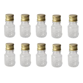 Kit 50 Frasco Pet De 10Ml Para Personalizar FestaCódigo: MAD-MC ESSENCIAIdeal para personalizar com o tema do evento, item versátil, dinâmico e indispensável para a decoração da mesa de sua festa.Produto em plástico acrílico não descartável;Acabamento em alta qualidade;Alta durabilidade;Atóxico, inodoro;Alta resistências a quedas; Conteúdo: 50 Frascos Transparentes com tampa Metalizada DouradaCapacidade/volume: 10 MLAltura do Frasco: 5mm.Diâmetro do bocal: 18mm.