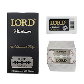 50 cinquenta lâminas de barbear descartável da marca lord platinum diamond edge - produto 01 caixas contendo 50 cinquenta lâminas de barbear descartável em aço inoxidável . Produto higiênicamente embalado - produto importado, produzido no egito. Produto não perecível com prazo de validade indeterminado. Marca: Lord Diamond Edge
