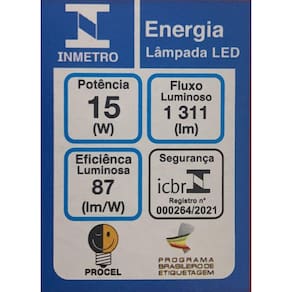 Kit 50 lampadas led cla90 15w 6500k 1311lm biv e27 - osram Kit 50 lampadas led cla90 15w 6500k 1311lm biv e27 - osram Ficha técnica do produto - eficiência em lm/w : 87,4 - índice de reprodução de cor irc : 80 - fator de potência : =0.8 - dimerizável : não - temperatura de operação : -20 + 40c - modelo : cla90 - tensão nominal : 100-240v - potência nominal : 15w - equivalência : 90w - fluxo nominal : 1311 lumens - temperatura de cor : 6500k luz branca fria Áreas de aplicação - aplicações residenciais e comerciais - iluminação geral - uso interno. Para utilização externa, é necessário utilizar luminárias vedadas ip65 . Características e benefícios - até 90% de economia de energia - vida útil de 25.000h - de 3 anos Marca: Não Informado
