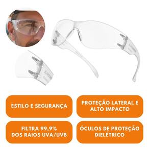 Os óculos de proteção summer combinam estilo e segurança. Sua armação isenta de partes metálicas possibilita o uso em trabalhos com eletricidade. Oferecem proteção: UV400 que filtram 99,9% dos raios UVA/UVB até 380 nm, alto impacto e lateral.