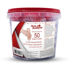 Kit 50 Pares Sapatilhas e 50 Pares Luvas com Creme Emoliente Contém 2 baldes: 01 - Kit 50 Pares de Sapatilhas com Creme Emoliente Arte Sedução01 - Kit 50 Pares de Luvas com Creme Emoliente Arte Sedução Pote econômico de lacre inviolável, são 50 pares de Sapatilhas e 50 pares de Luvas com creme hidratante e amolecedor de cutícula. A Arte Sedução traz pra você, os Kits Manicure e Pedicure com toda qualidade e confiança do mercado. Cada par de Botinha e Luva vem dentro de um sache emoliente de 18 gramas cada. Proporcionam frescor e resultados profissionais no cuidado com as mãos e pés.Nossos produtos são 100% descartáveis, evitando contaminações e doenças.Kits descartáveis dispensam o uso de água durante o procedimento. Composição: Aqua, Disodium EDTA, Cetearyl Alcohol, Ceteareth-20, Paraffinum Liquidum, Phenoxyethanol, Ethylparaben, Methylparaben, Propylparaben, Butylparaben, Aloe Barbadensis Leaf Extract, Parfum, Alpha-Isomethyl Ionone, Butylphenyl Methylpropional, Coumarin, Eugenol, Geraniol, Hexyl Cinnamal, Isopropyl Myristate, Hidrolyzed Keratin. Precauções: Uso externo, manter fora do alcance de crianças. Não utilizar sobre a pele irritada ou lesionada. Evitar contato com os olhos. Para uso durante a gravidez consulte um médico. Em caso de irritação suspender o uso. Conservar em local fresco afastado da incidência de forte calor e luz solar. Modo de usar: 1º - Retirar o esmalte.2º - Lixar as unhas.3º - Colocar as Botas ou as Luvas.4º - Massagear os pés ou as mãos e as pontas dos dedos espalhando o creme.5º - Deixar o creme agir.6º - Romper as pontas dos dedos da Bota ou da Luva7º - Retirar a cutícula.8º - Retirar a Bota ou a Luva.9º - Para ter melhor aderência retire o excesso de creme utilizando o palito descartável com algodão umedecido em acetona. Boa compras ;