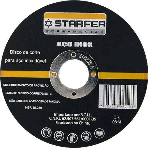 Disco de corte inox 9X7/8 STARFER possui alta performance e é utilizada em cortes de metais nobres, como aço inox.