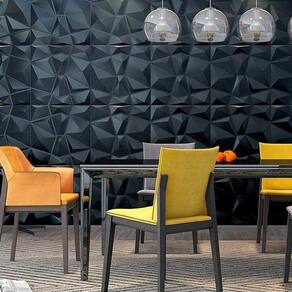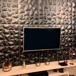 Placa revestimento pvc 3d. Perfeito para decorações de interiores o modelo é na cor preto levando mais charme e sofisticação para seu ambiente.