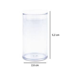 Características principais: - tampa branca - pote transparente - tampa efeito pressão - pote hermético