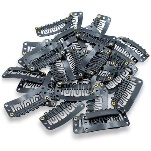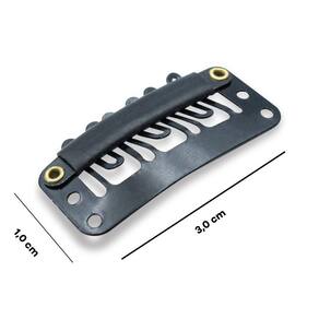 Presilhas tipo Tic Tac nas medidas 3 cm de comprimento por 1 cm de largura. Perfeitas para uso na fixação de peças de alongamento como perucas, próteses e apliques. Feitas em metal, possuem revestimento emborrachado que proporciona firmeza quando aplicado no cabelo, garantindo que as mesmas não saiam da posição inicial durante a utilização. Já com furações necessárias para a confecção.
