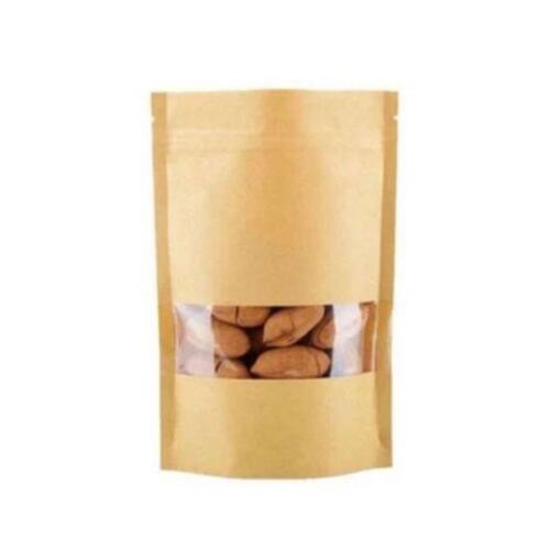 Kit 50 Sacos Kraft Com Zip Lock Visor Stand Up Pouch 12X20Cm