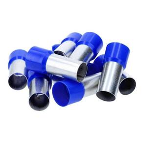 Kit 50pçs Terminal Tubular Ilhós 120mm Isolado Azul E120-27 O Terminal Tubular é próprio para uso em eletroeletrônica, painéis elétricos, ligações de motores, máquinas, quadros de distribuição elétrica dentre outras, onde são exigidas dimensões reduzidas para contato e resistência a vibrações. Padrão de cores conforme norma DIN. Também conhecido como Terminal Ilhós, é constituído de um tubo de cobre de alta condutibilidade estanhado e é pré-isolado. Descrição do produto: O Terminal Pré-isolado Tubular Ilhós Simples são peças utilizadas na terminação de condutores, com capa plástica para isolação na região da conexão do condutor com o terminal. Produzidos em cobre eletrolítico, com acabamento estanhado possuem alta condutibilidade elétrica e resistência a corrosão. Aplicados em painéis elétricos, ligações de motores, máquinas, quadros de distribuição elétrica dentre outras. Terminal E120-27 Terminal Pré-isolado Tubular Ilhós Simples 120mm Comp. Do Tubo: 27mm Cor: Azul Temperatura: 105º C - Retardante de Chamas Conforme Certificação: UL 94V - 2 Conteúdo da Embalagem 50 x Terminal Tubular Ilhós Simples 120mm Marca: Decorarmais
