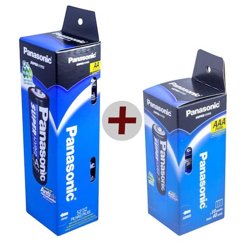 1 TUBO COM 52 PILHAS MODELO AA PANASONIC + 1 TUBO COM 40 PILHAS MODELO AAA PANASONIC