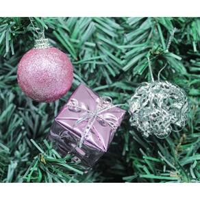 Kit 55 Peças Tubo Natalino Árvore De Natal Prata E Rosa 4cm -