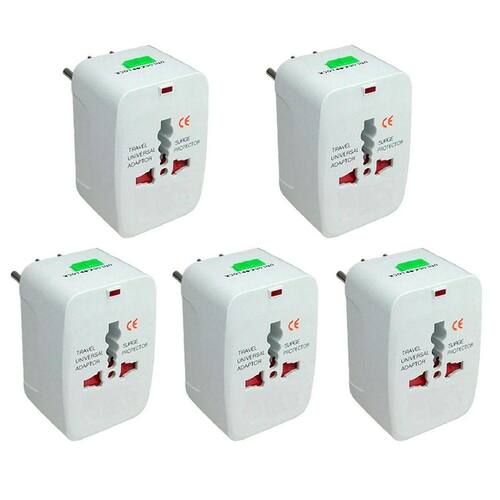 Adaptador tomada internacional all in one / kit 5x Economize com este kit - cinco unidades Atacado / revenda Com esse adaptador universal internacional 3 plugs bivolt é compatível com as tomadas de 150 países ao redor do mundo. É ideal para funcionamento de todos os tipos de aparelhos eletrônicos. Com ele você elimina a necessidade de transportar vários adaptadores. Funções especiais:- indispensável para viagens internacionais, compatível com mais de 150 países.- os plugues são retrateis permitindo o uso nos padrões de todas tomadas.- ideal para conectar plugs de aparelhos que não sejam padrão nacional br.- possui 2 travas de proteção, 3 plugs retrateis e possui led de funcionamento. Leve e compacto, cabe em qualquer bolsa ou mochila. Perfeito para quem esta sempre viajando e precisa ligar seus aparelhos eletrônicos. Compatível:- europa, estados unidos, inglaterra, londres, austrália, méxico, china, japão, tailândia, espanha, oriente médio, américa do sul, argentina, uruguai, grã-bretanha, áfrica, américa do norte, europa ocidental, europa oriental, ásia e em centenas de outros países. Atenção, esse produto não é transformador de voltagem Especificações:- modelo universal internacional- material: plástico- cor: branco- entrada usb: não- led indicador de energia: sim- voltagem universal: 110v até 250v- bivolt: sim- tensão: 125v 6a 250v 13a- entrada: universal- medidas aproximadas axlxc : 4x5x7cm Conteúdo da embalagem:05x adaptador tomada universal all in one cinco unidades