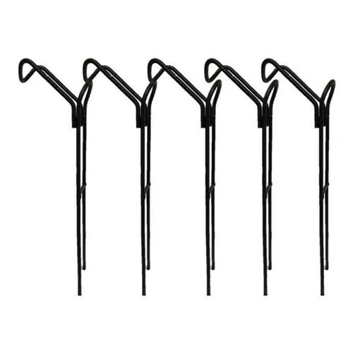 Cor do suporte: preto Comprimento da base para fincar no chão: 15 cm Largura: 4 cm Comprimento total: 22 cm Peso unitário: 88 g Itens inclusos: selecione entre unitário ou kit com 5 unidades.