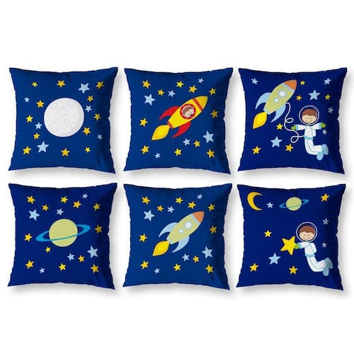 Kit 6 Almofadas Cheias Infantil 40Cm X 40Cm Zíper Astronauta
