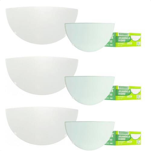 Kit 6 Arandelas Jurerê Vidro Meia Lua E27 Taschibra Características Gerais do Produto: Dimensões AxLxP CM : 17 X 9 X 30 Formato: Meia Lua Produzido em: Aço e Vidro Voltagem: Bivolt em 110V e 220V Cor acabamento: Branco Potência máxima Por soquete : 40W Para uso em soquete: E27 Tradicional : 90 dias junto ao fabricante Aplicação: Parede Acompanha lâmpada: Não Sistema de aterramento: Não Acompanha o produto: 06 Arandela 06 Kit Instalação : 90 dias Marca: Não Informado
