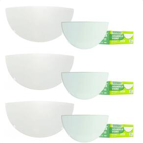 Kit 6 Arandelas Jurerê Vidro Meia Lua E27 Taschibra Características Gerais do Produto: Dimensões AxLxP CM : 17 X 9 X 30 Formato: Meia Lua Produzido em: Aço e Vidro Voltagem: Bivolt em 110V e 220V Cor acabamento: Branco Potência máxima Por soquete : 40W Para uso em soquete: E27 Tradicional : 90 dias junto ao fabricante Aplicação: Parede Acompanha lâmpada: Não Sistema de aterramento: Não Acompanha o produto: 06 Arandela 06 Kit Instalação : 90 dias Marca: Não Informado