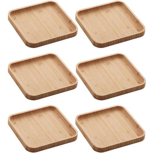 Kit 6 Bandejas de Bambu Squaze Lyor 17x17cm Pratos Quadrados para Servir Petiscos Mesa Posta.