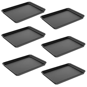 Kit 6 Bandejas Plásticas para Servir 32x23cm Preto Restaurante A4 Fast Food Coza.