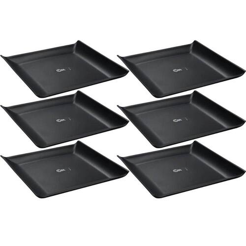 Kit 6 Bandejas Quadradas Preta 20,6cm Prato Cosy Petiscos Saladas Coza Plástico.