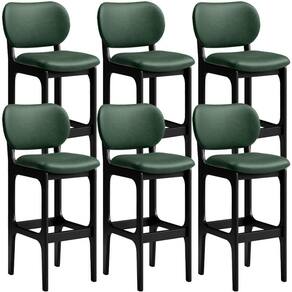 Amplamente sofisticado, o Kit 6 Banquetas Alta Bar Cozinha Sala Jantar Fixa Betta L02 Preto Facto Verde Musgo - Lyam Decor irá agregar ainda mais valor em sua decoração!! Sendo capaz de compor muito bem o ambiente, é produzido com materiais de excelente qualidade, a resistente estrutura em madeira de Taeda, na cor preto, conta com apoio para os pés (que garante maior segurança), além do assento e encosto estofados super confortáveis e convidativos, que são revestidos em tecido Facto, extremamente elegante.