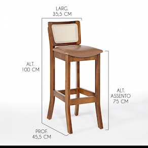 INFORMAÇÕES TÉCNICAS: Altura Total: 100 cm Altura Chão até Assento: 75 cm Altura Encosto: 29 cm Largura Total: 35,5 cm Largura do Assento: 41 cm Profundidade Total: 45,5 cm Profundidade Assento: 35 cm Peso: 7 kg