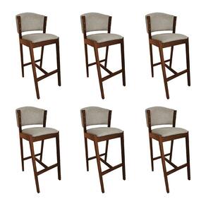 Kit 6 Banquetas Alta De Madeira Maciça Natural Premium Ana Com Encosto Linho Bege
