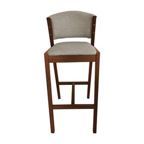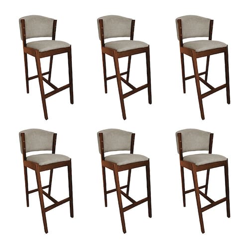 KIT 6 BANQUETAS ALTA DE MADEIRA MACIÇA NATURAL PREMIUM ANA COM ENCOSTO LINHO BEGE