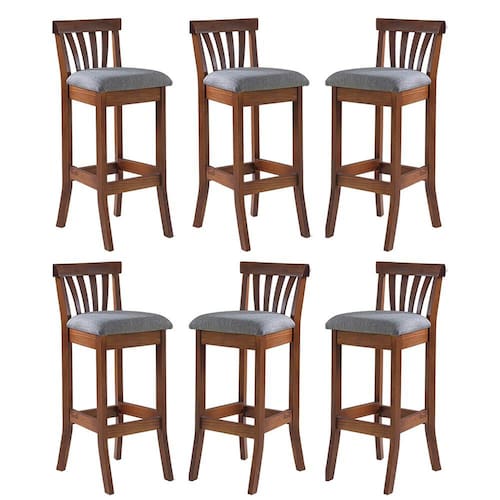 Kit 6 Banquetas Alta Estofada Anthurium 36 x 100 Cm Madeira Maciça Imbuia Linho Cinza L55 - RMI