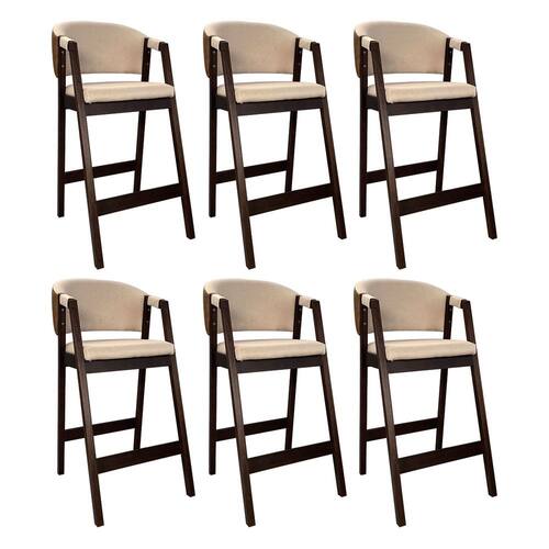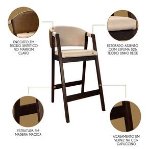 Kit 6 Banquetas Alta para Cozinha Ravena em Madeira Maciça Capuccino Linho Bege Marrom CCS