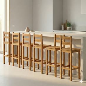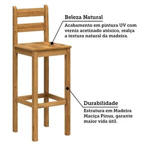 As banquetas altas Martin são em Madeira Maciça com acabamento em pintura UV Atóxico de verniz acetinado que realça os veios naturais da madeira. Estrutura com peças reforçadas para maximizar a estabilidade e durabilidade. Móvel ergonômico e confortável, ideal para compor espaços gourmet, ambientes rústicos ou clássicos. Ótima opção para cozinhas ou varandas. Acabamento da Estrutura: Pintura Altura do assento até o chão: 75 cm Altura do Encosto: 32 cm Altura Regulável: Não Ambiente Principal: Sala de Jantar codigo_ean: 7900288316677 Complexidade da Montagem: Baixa: pode ser montado por uma pessoa sozinha Cor: Nogueira Cor do Produto: Nogueira Dobrável: Não Escala de Brilho: Semi-Brilho Informações Complementares: Possui cantos arredondados e acabamento com Pintura UV e Verniz Acetinado Atóxico. Encosto com ripado, aumentando o conforto. Itens Inclusos: 6 Banquetas, Manual de Montagem e Kit de Ferragens. Linha ou Coleção: Martin Manual de Montagem e Instalação: https://product-hub-prd.madeiramadeira.com.br/828667777/documents/5aee13ad-a83e-4a88-930f-4491825d10653366915634117691765962674.pdf Marca: Espresso Móveis Material do Assento: Madeira Maciça Material do Encosto: Madeira Maciça Necessita Montagem: Sim Origem do Produto: Nacional Peso: 9 kg Possui Almofada no Assento: Não Possui Apoio Para os Pés: Sim Possui Encosto: Sim Possui Rodízio: Não Recomendações de Uso, Manutenção e Limpeza: Limpar com flanela ou pano macio seco, não utilizar produtos abrasivos, desengordurantes, álcool ou solvente. Sistema de Montagem: Parafuso, cavilha e cola. Tipo de Assento: Fixo Tipo de Encosto: Fixo Tipo de Madeira Maciça: Pinus