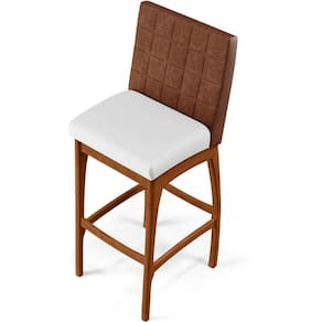 Entregando muita excelência, o Kit 6 Banquetas Altas Cozinha Sala Jantar Fixa Mila B04 Couríssimo Marrom Corano Branco - Lyam Decor é o complemento que faltava para deixar sua casa ainda mais extraordinária. Seu encosto com costura em padrão quadriculado e assento estofados, centralizam em si uma graciosidade estonteante, sem perder todo o conforto. A estrutura em madeira, na cor nozes, também é digna de notoriedade, por imprimir bastante personalidade a sua decoração. Vale ressaltar ainda, o apoio para os pés que garante maior segurança à banqueta.
