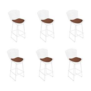 AS IMAGENS SÃO MERAMENTE ILUSTRATIVAS E PODEM SOFRER VARIAÇÕES DE COR E PEQUENOS DETALHES DE ACORDO COM O SEU MONITOR, ILUMINAÇÃO DO AMBIENTE E ATÉ MESMO A SUA PERCEPÇÃO VISUAL.Kit 6 Banquetas Bistrà Bertoia Branca D60 com Assento Marrom