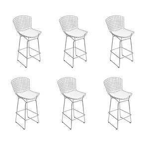 AS IMAGENS SÃO MERAMENTE ILUSTRATIVAS E PODEM SOFRER VARIAÇÕES DE COR E PEQUENOS DETALHES DE ACORDO COM O SEU MONITOR, ILUMINAÇÃO DO AMBIENTE E ATÉ MESMO A SUA PERCEPÇÃO VISUAL.Kit 6 Banquetas Bistrà Bertoia Cromada D70 com Assento SintÃtico Branco