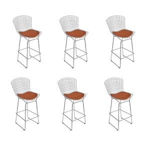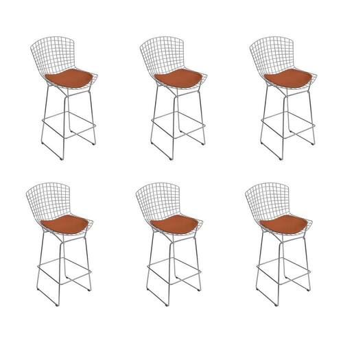 AS IMAGENS SÃO MERAMENTE ILUSTRATIVAS E PODEM SOFRER VARIAÇÕES DE COR E PEQUENOS DETALHES DE ACORDO COM O SEU MONITOR, ILUMINAÇÃO DO AMBIENTE E ATÉ MESMO A SUA PERCEPÇÃO VISUAL.Kit 6 Banquetas Bistrà Bertoia Cromada D80 com Assento SintÃtico Cobre