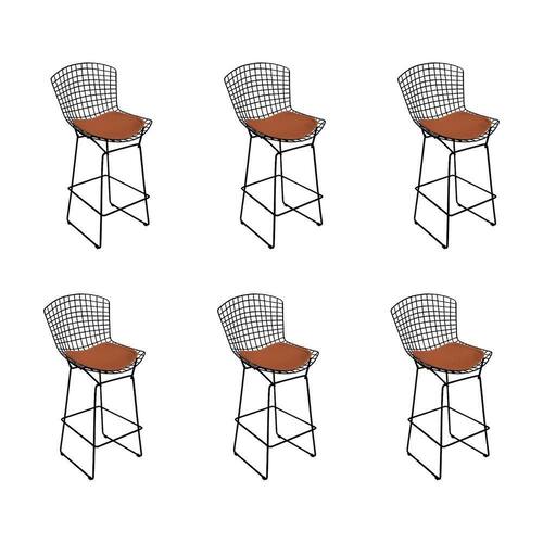 AS IMAGENS SÃO MERAMENTE ILUSTRATIVAS E PODEM SOFRER VARIAÇÕES DE COR E PEQUENOS DETALHES DE ACORDO COM O SEU MONITOR, ILUMINAÇÃO DO AMBIENTE E ATÉ MESMO A SUA PERCEPÇÃO VISUAL.Kit 6 Banquetas Bistrà Bertoia Preta D70 com Assento Cobre
