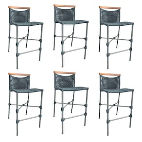 Kit 6 Banquetas Anne Em Corda Náutica Base Em Alumínio Cinza Com Detalhe Em Madeira Cinza - Cor: Cinza