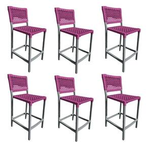 Kit 6 Banquetas França Em Corda Náutica E Base Em Alumínio Cinza Para área Gourmet Rosa - Cor: Rosa
