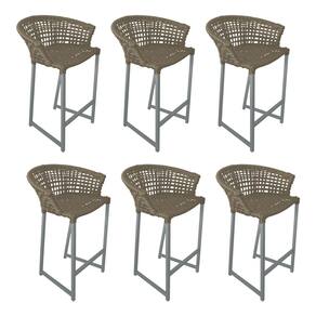 Kit 6 Banquetas Reis em Corda Náutica e Base em Alumínio Cinza para Área Gourmet - Externa Rami - Bege