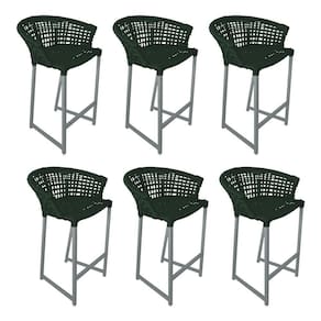 Kit 6 Banquetas Reis Em Corda Náutica E Base Em Alumínio Cinza Para área Gourmet Verde Musgo Verde