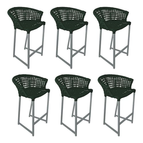 Kit 6 Banquetas Reis Em Corda Náutica E Base Em Alumínio Cinza Para área Gourmet Verde Musgo - Cor: Verde Apresentamos a nossa deslumbrante Banqueta em Corda Náutica Reis, uma peça de mobiliário que combina perfeitamente funcionalidade e design sofisticado. São uma adição excepcional para qualquer espaço da sua casa, desde a sala de estar até à varanda.Características:Tipo: Banqueta Modelo: Reis Cor Base: Cinza Cor Corda: Verde MusgoMedidas:Altura: 97cmLargura: 49cmComprimento: 45cmATENÇÃOIMAGENS MERAMENTE ILUSTRATIVAS REALIZADO EDIÇÃO, PODENDO HAVER UMA PEQUENA VARIAÇÃO DE COR DEPENDENDO DE CADA TELA OU MONITOR.Kit 6 Banquetas Reis em Corda NÃutica e Base em AlumÃnio Cinza para Ãrea Gourmet Verde Musgo Marca: Guimaraes Store Ean: 7895037697353