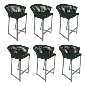 Kit 6 Banquetas Reis em Corda Náutica e Base em Alumínio Cinza para Área Gourmet Verde Musgo