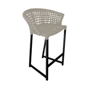 Kit 6 Banquetas Reis em Corda Náutica e Base em Alumínio Preta para Área Gourmet - Externa Areia - Bege