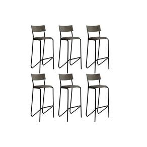 Kit 6 Banquetas Sala Jantar Atlas 1747 6 Uni Preto/Linho Grafite/Courano Preto - Carraro