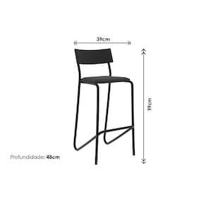 Banqueta Sala de Jantar Atlas 1747 Kit 2 Un Preto/Linho Grafite/Courano Preto - Carraro