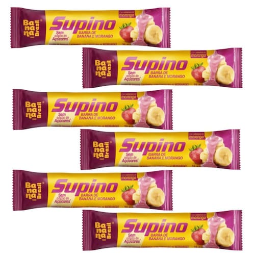 Kit 6 Barra de Banana com Morango e Cobertura de Morango 24g - Banana Brasil Doce na medida certa, com sabor irresistível de morango A Barra de Banana com Morango e Cobertura de Morango da Banana Brasil é A escolha perfeita para quem aprecia uma combinação deliciosa e prática. Produzida com pedaços de banana e morango cuidadosamente selecionados, Recebe uma cobertura sabor morango que deixa cada mordida ainda mais Marcante. Compacta e leve, é ideal para levar na bolsa, lancheira ou mochila, Proporcionando uma experiência saborosa em qualquer momento do dia.