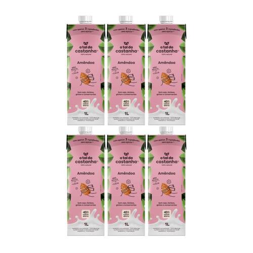 Kit 6 amêndoas 1l - a tal da castanha o leite de amêndoas é a alternativa perfeita ao leite tradicional, com sabor suave e versatilidade para diversos preparos. Feito com apenas três ingredientes, ele é livre de açúcar e aditivos químicos. Sua nova fórmula foi enriquecida com cálcio, oferecendo 40% da recomendação diária por porção. Uma opção saudável e deliciosa para incluir na sua rotina.