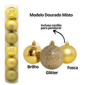 Kit 6 Bolas De Natal Decoradas Mista Dourado 8cm