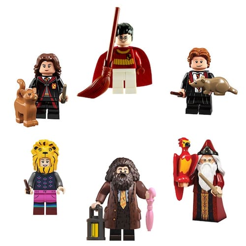 O kit inclui 6 personagens: - Harry Potter c/ Vassoura - Hermione Granger- Ron Weasley- Albus Dumbledore - Hagrid- Luva Lovegood Miniaturas em blocos de montarAltura aproximada: 4cmExcelente qualidade e acabamento.Material: PVCEmbalagem: Plástico opp lacrado individualmente de fábricaFaixa etária: +6 anos (contém peças pequenas) Marca: BLOCO DE MONTAR